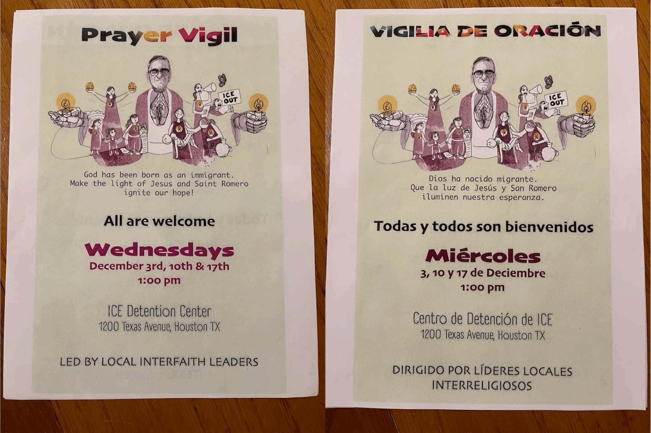 The EDOT family is inviting everyone to participate in Wednesday Vigils over the next three weeks at 1:00 p.m. at the Federal Detention Center, located at 1200 Texas Avenue, across from the Houston Diocesan Center.
