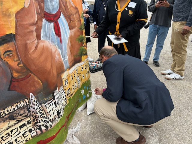 The mural was commissioned to artist Lakeem Ali Wilson and offers a preview of the permanent artwork that will be installed at the site. The gathering brought together descendants of Mr. Fred Rouse, clergy, and community partners, and was marked by the presence of Opal Lee, underscoring the ongoing call to remembrance, truth-telling, and public accountability as the site continues its transformation.