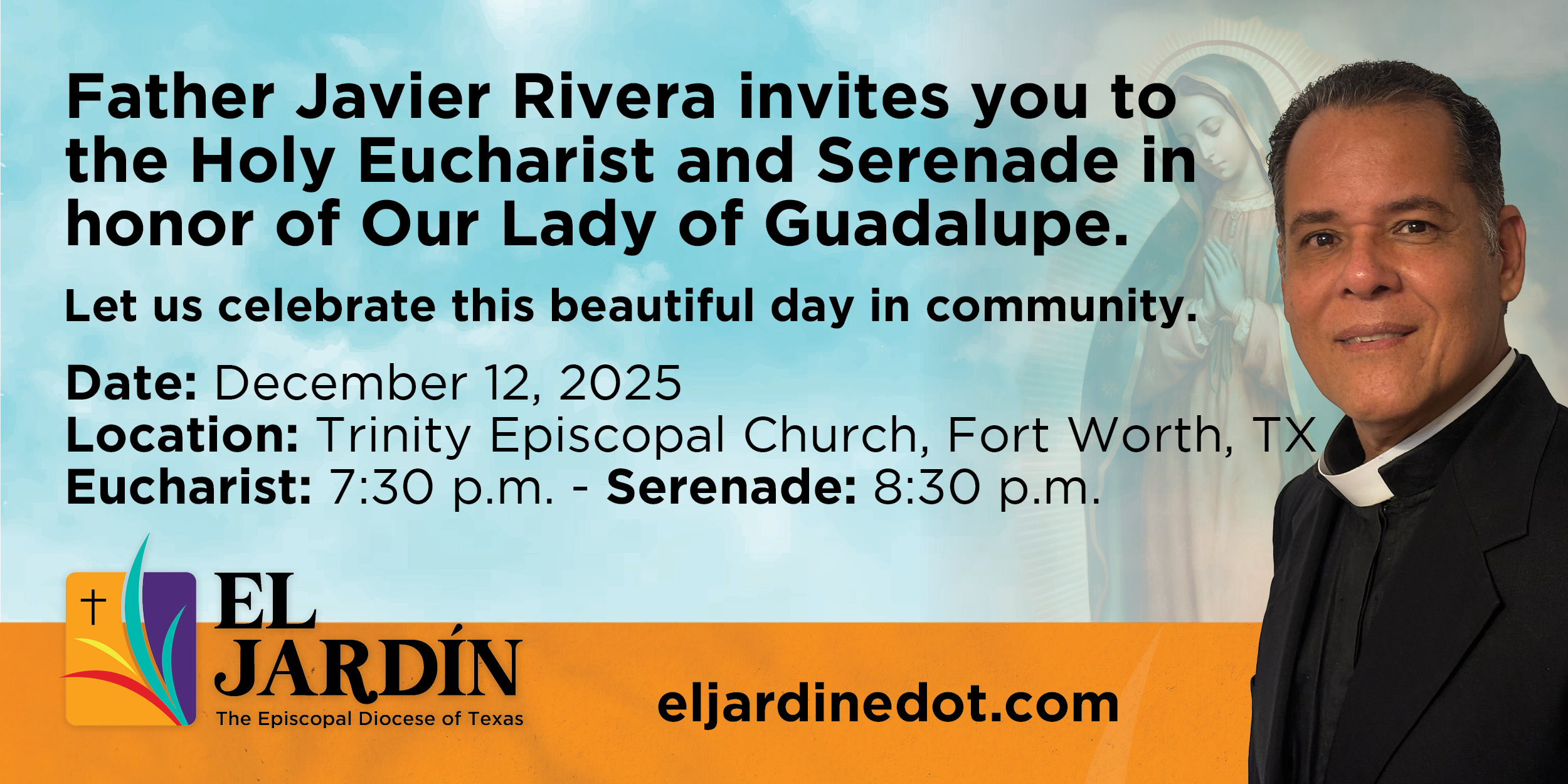 Father Javier Rivera invites you to the Holy Eucharist and Serenade in honor of Our Lady of Guadalupe.
